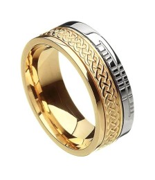 This men's Celtic wedding ring features the famous Celtic knot embossed onto the band, which represents endless love because it has no beginning or end. This stunning ring is available in yellow or white gold.Â