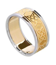 A truly stunning Celtic wedding band, handcrafted with embossed Trinity knots surrounding the band and finished with a trim of choice. Choose from the vibrant all yellow gold, the cool all white gold, the eye-catching white gold with yellow trim or the popular yellow gold with white gold trim. Whatever you choose, you can be assured of quality.