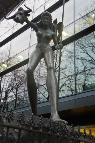 Outside Groupon's office in Dublin, Ireland there is a tall statue of Queen Medb (Maeve) of Connaught.