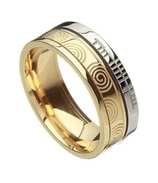 Die einzigartigen spiralförmigen Steinschnitzereien in Newgrange sind mindestens 5000 Jahre alt, aber von unseren Handwerkern auf diesem atemberaubenden keltischen Ehering neu.