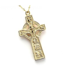 Classique et glamour, émeraude et or, les couleurs se complètent toujours l'autre oeil plaisamment. Trinity nœuds de vent et armure de bout en centre de cette croix d'or intemporel. Le cercle lunaire ou solaire reliant toutes choses est parée élégamment avec des noeuds spirale pressés ainsi.